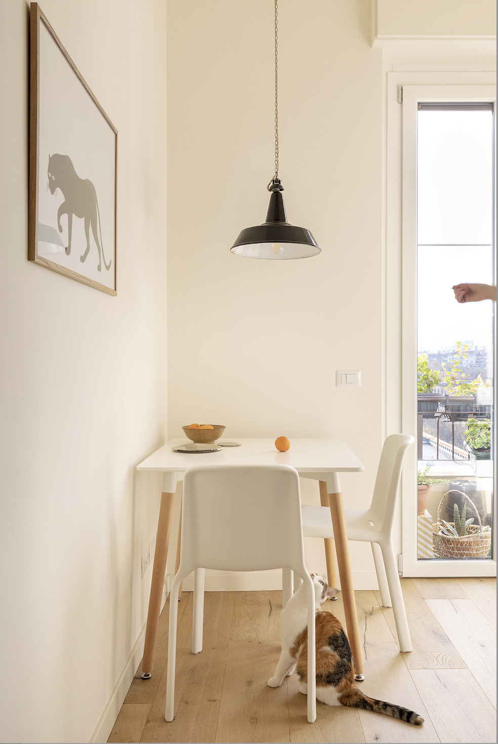 - Comedor de Pedrali, lámpara de 1900 y Nilde, la gata..