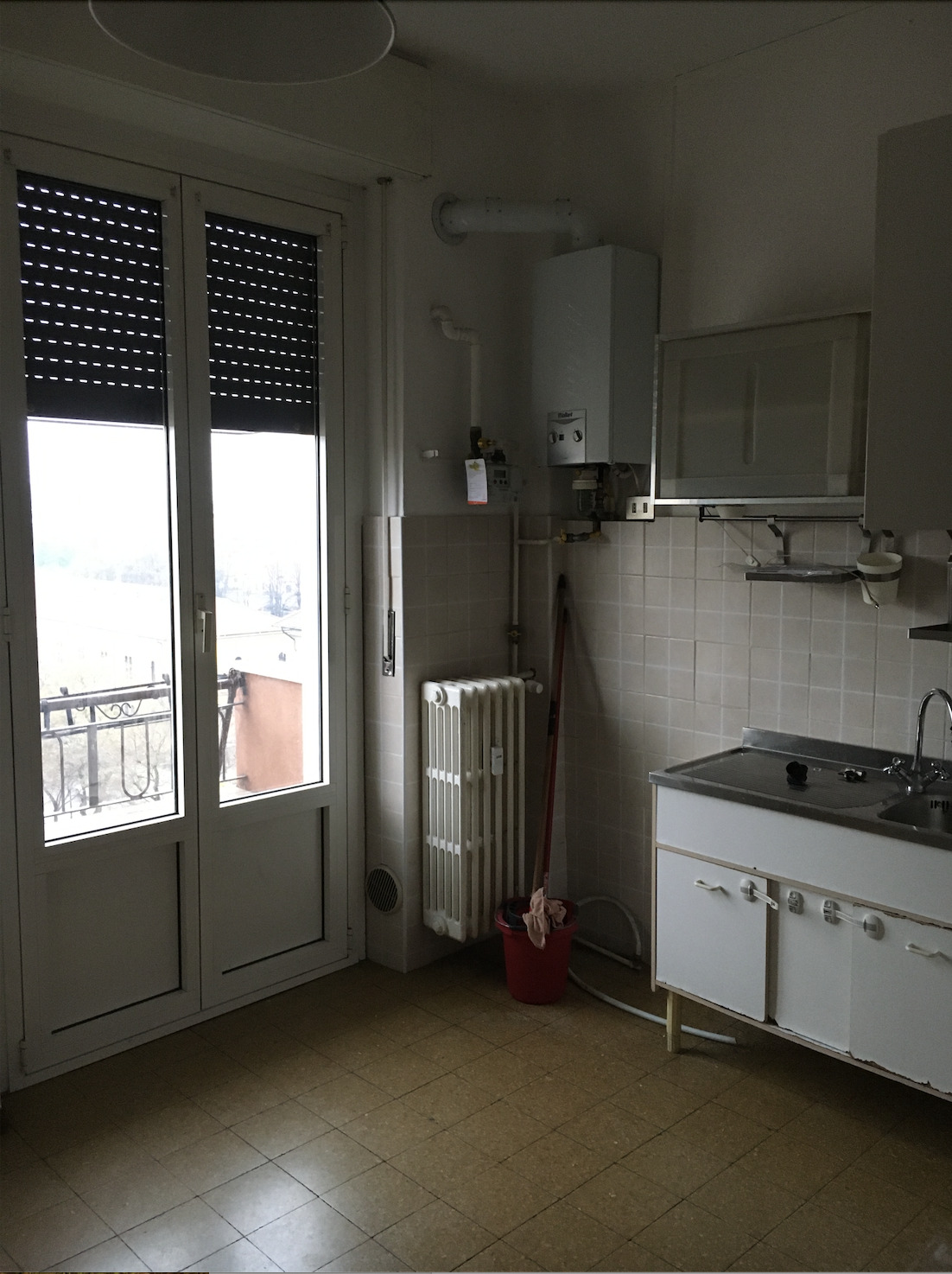 Además, en el apartamento de Arianna la cocina merece una mención especial. Su nuevo aspecto presenta una distribución en L y el mobiliario, limpio y contemporáneo, es un diseño hecho a la medida de la firma Turati Cucine, con sede en Meda. El blanco que prima en el espacio lo interrumpen las tabletas verticales con motivos geométricos, de tonos marrón, gris y azul oscuro, que se instalaron en el salpicadero. Estas piezas aportan sutiles notas de color y una aparente sensación de movimiento. El espacio lo complementa una pequeña mesa de comedor, diseño de Odo Fioravanti para Pedrali.