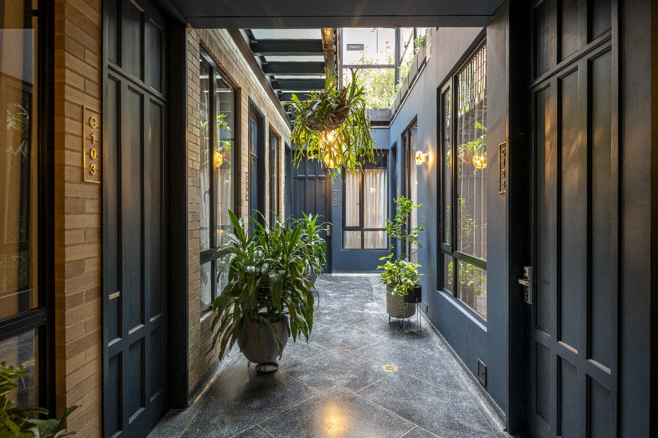 “Sembramos más de dos mil plantas para destacar la importancia de captar CO2 del ambiente de todos los predios aledaños. Cuando caminas por el andén de Hab te sientes en un oasis de árboles nativos. Además, los patios internos son un paraíso verde dentro de la cuidad. También, en los corredores del hotel vas a encontrar fuentes de agua filtrada para eliminar el uso de botellas de plástico”, puntualiza Ana María Calle. Esto forma parte del compromiso de este proyecto hotelero con el desarrollo sostenible.