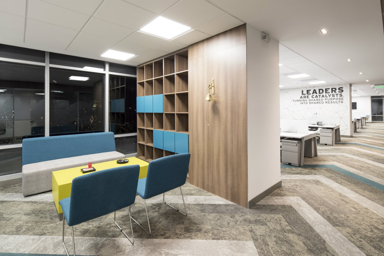 Las oficinas se ubican en el piso 19 del complejo empresarial Tierra Firme y comprenden 970 m2. Así, el área la ocupan la recepción, varias salas de juntas, 76 puestos de trabajo, cafetería y zonas para esparcimiento y encuentros casuales.