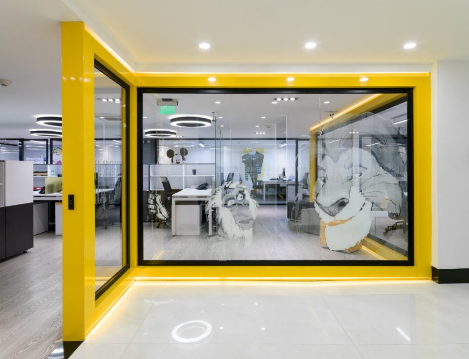 Las oficinas de Cine Colombia, en Bogotá, sobresalen por su atractivo diseño interior que incluye el uso de colores llamativos, espacios concebidos para el trabajo en equipo e imágenes de …