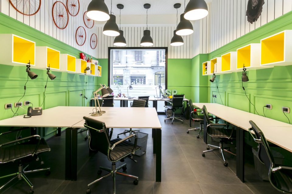 Colores vibrantes, atractivos elementos de diseño y una iluminación óptima caracterizan #IWORKHERE, un espacio de trabajo colaborativo para empresas pequeñas, en Milán, concebido por la firma italiana HIT ArcHITechts. (Fotografía …