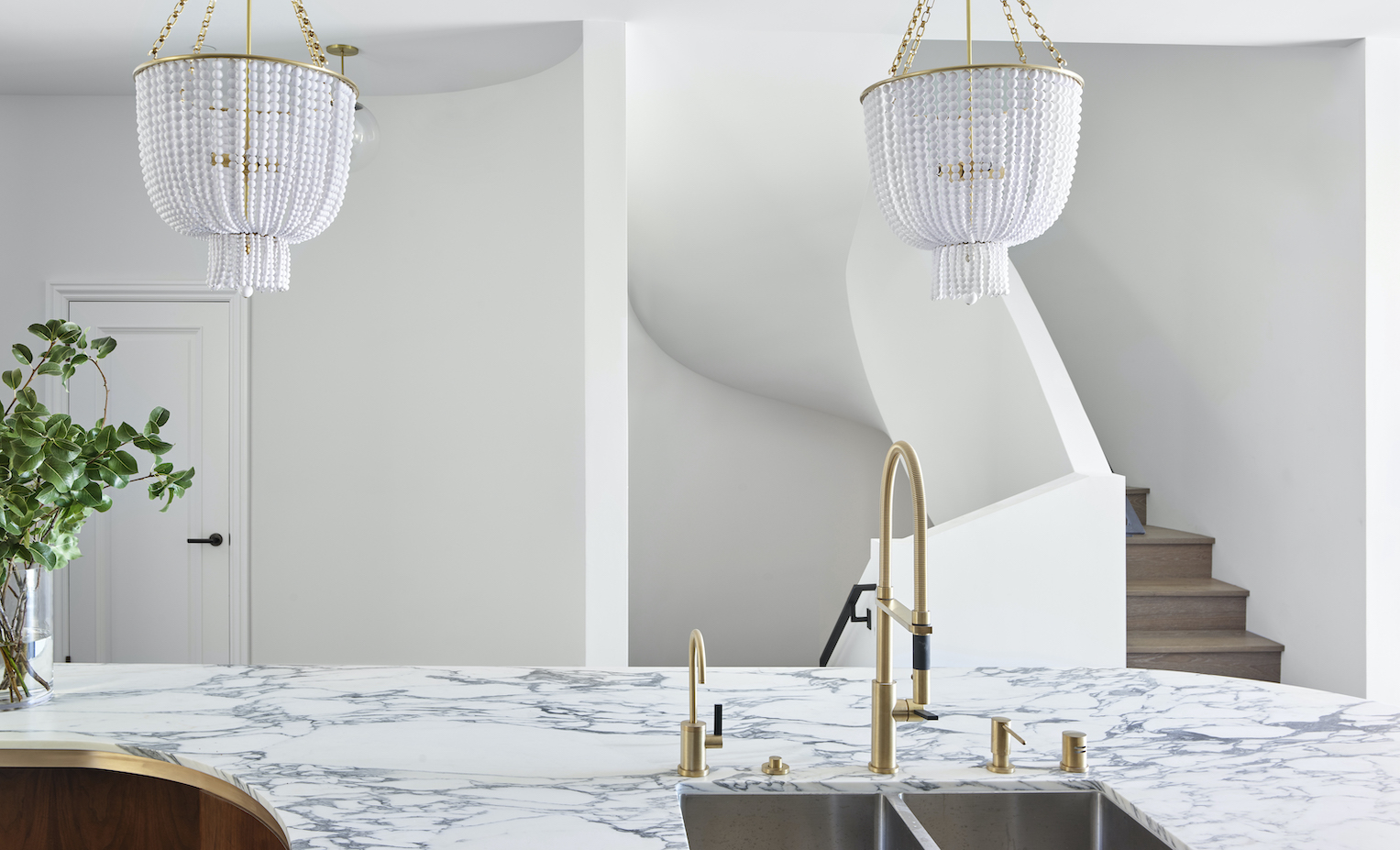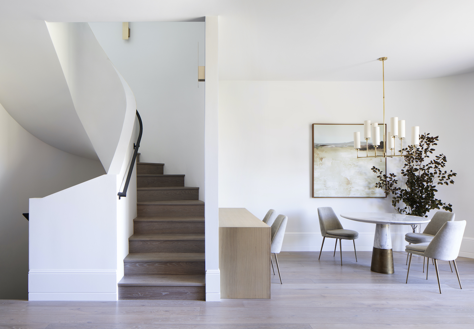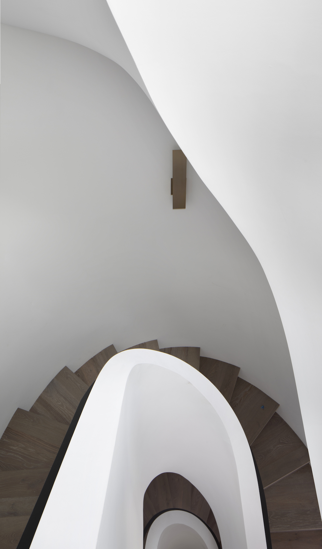 Tras la reforma integral, hoy, Wraparound House tiene 444 m2 de área interior y seis habitaciones. A esto se suman 127 m2 de terrazas al aire libre y un deck en la cubierta. Entre los detalles arquitectónicos interiores sobresale la curvilínea y escultórica escalera que conecta las tres plantas. Es el corazón de la vivienda.